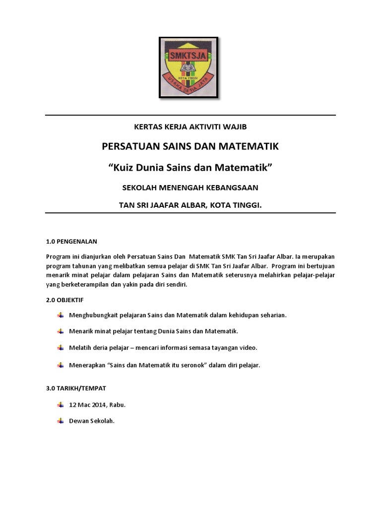 Kertas Kerja Persatuan Sains Dan Matematik Pdf